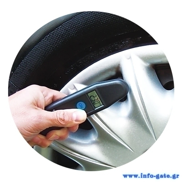 Μετράει την πίεση των ελαστικών εύκολα και γρήγορα και υποστηρίζει πιέσεις έως 7 Bar.