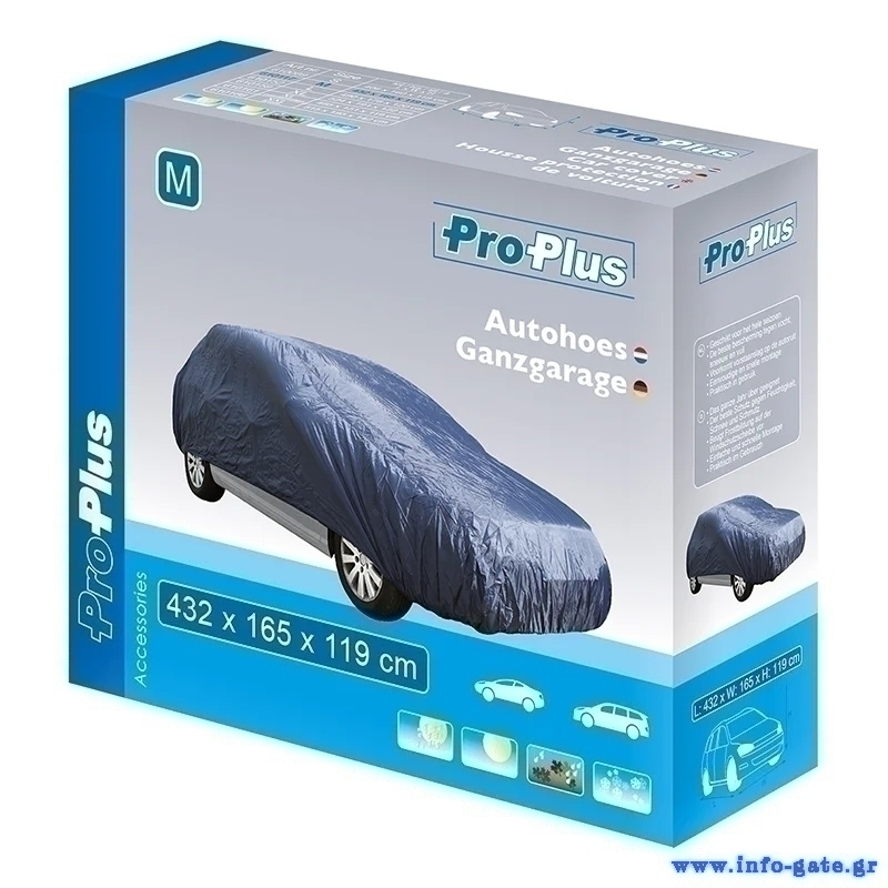 Κουκούλα για αυτοκίνητα από την ProPlus. Χάρη στο ανθεκτικό υλικό κατασκευής της, προστατεύει αποτελεσματικά το όχημα σας από τον ήλιο, το χιόνι και την βροχή.