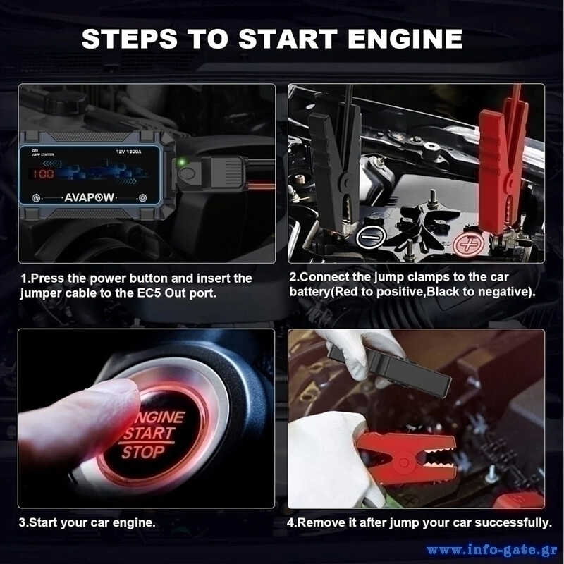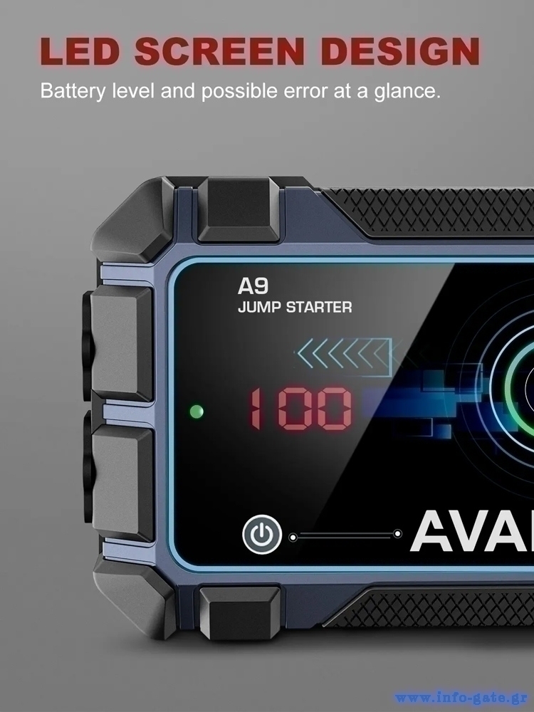 Ο εκκινητής μπαταρίας αυτοκινήτου A9 Pro είναι κατάλληλος για την εκκίνηση μπαταριών σε 12V οχήματα με έως 8lt βενζίνης και έως 8lt diesel κινητήρα.