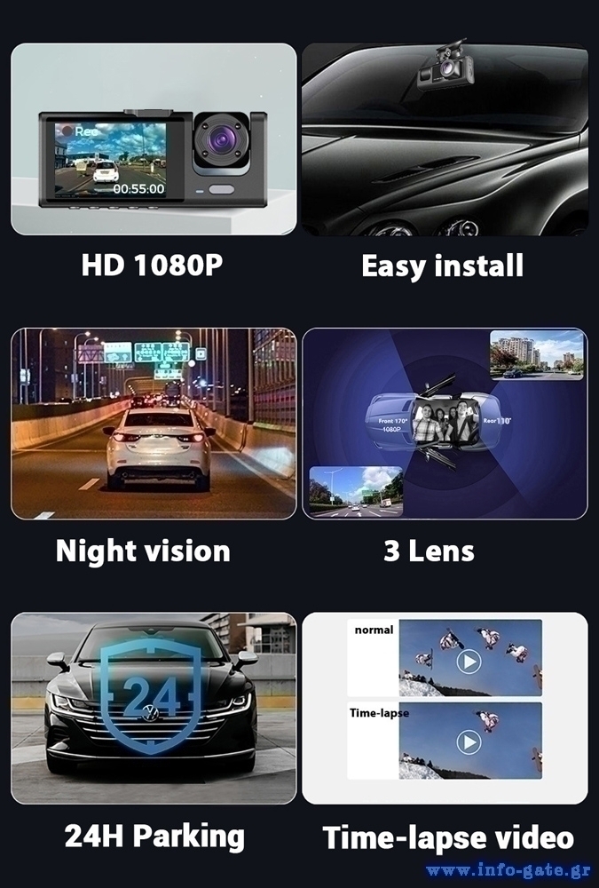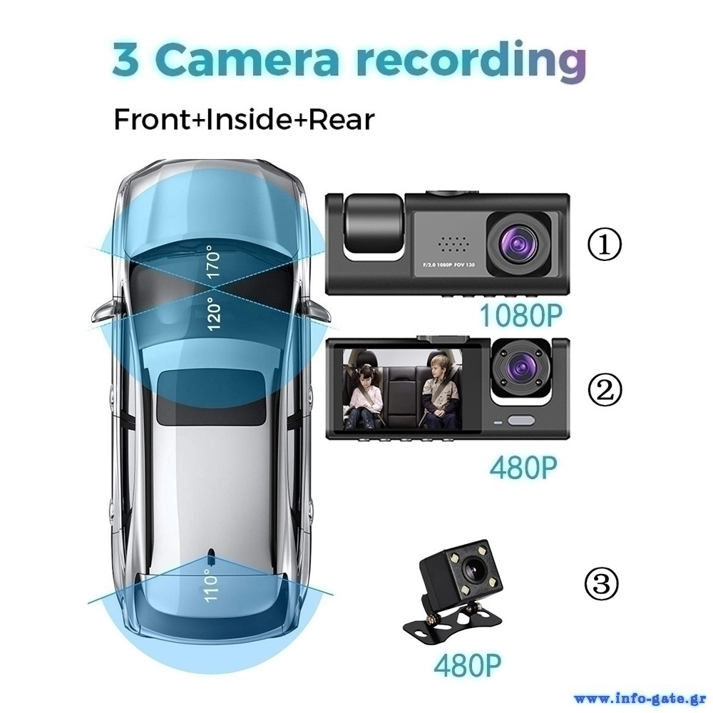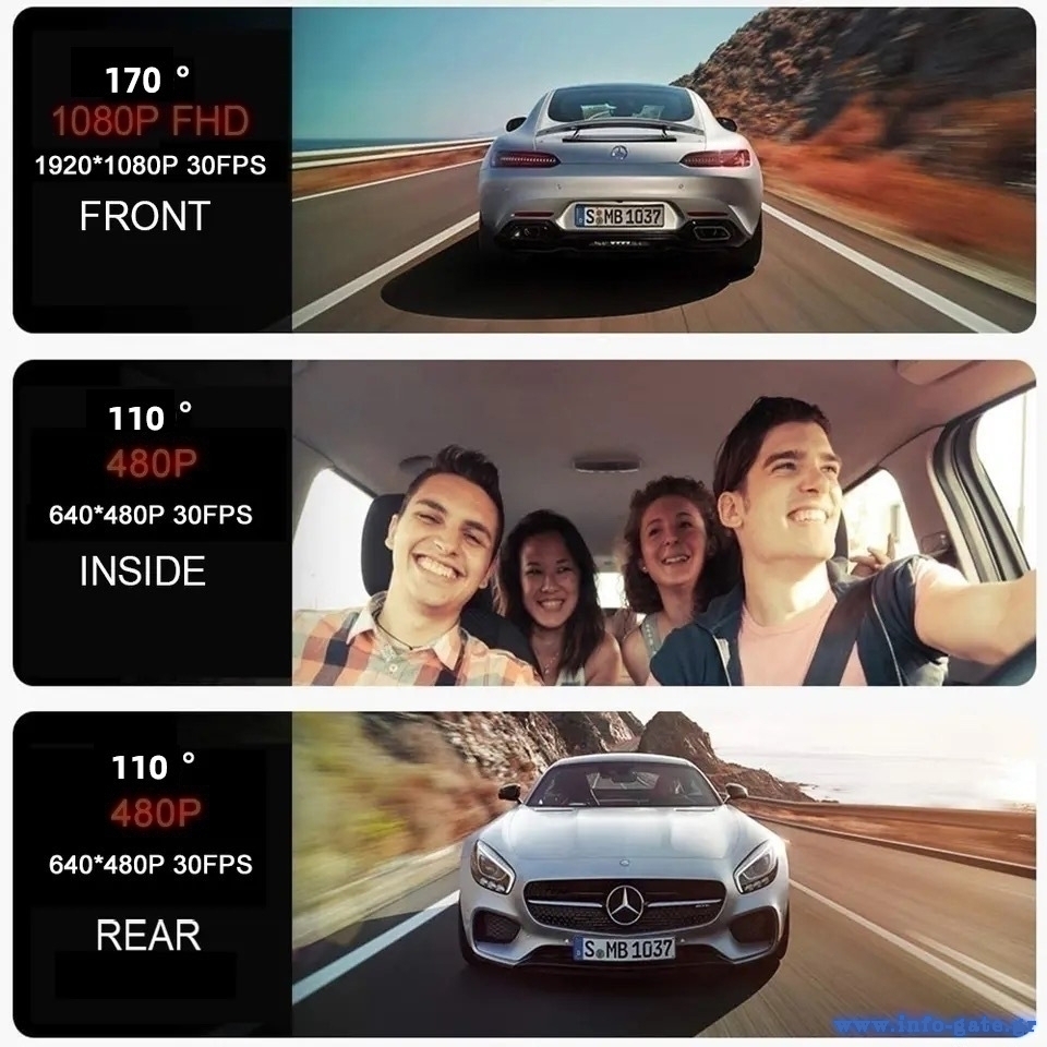 -ανάλυση: μπροστινή κάμερα: 1080p, κάμερα καμπίνας: 480p, οπίσθια κάμερα: 480p