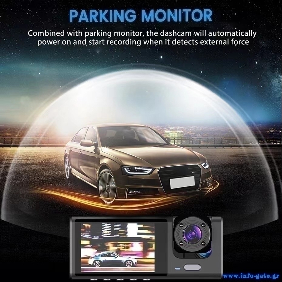 POWERTECH κάμερες αυτοκινήτου PT-1331, μπροστινή/καμπίνας/οπισθοπορείας, 2" οθόνη, 1080p/480p