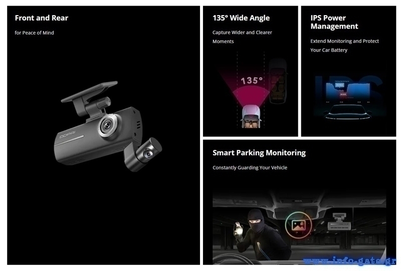 Εξοπλίζεται με αισθητήρα βαρύτητας, χάρη στον όποιο ξεκινά αυτόματα την καταγραφή σε περίπτωση τρακαρίσματος είτε το όχημα βρίσκεται εν κίνηση, είτε είναι σταθμευμένο.