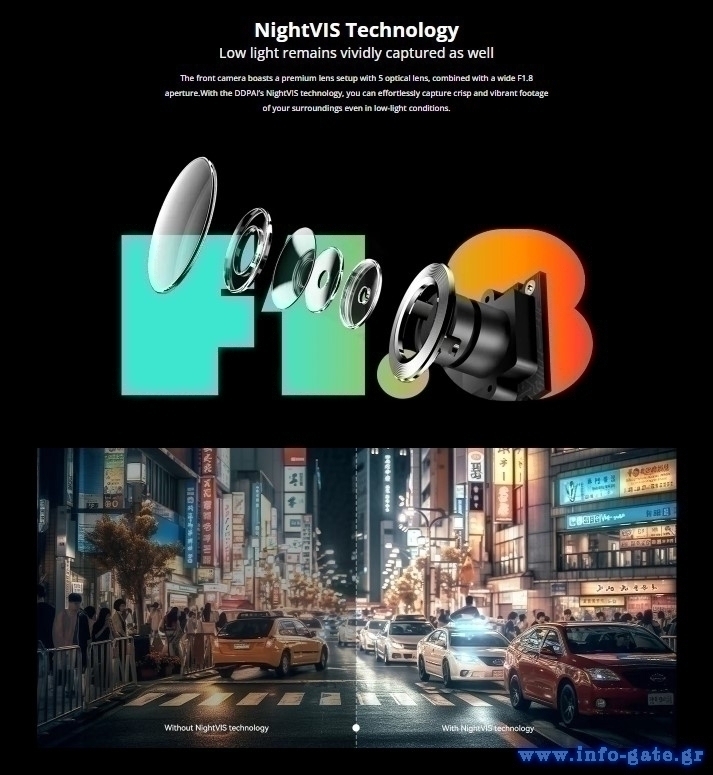 DDPAI smart σετ καμερών αυτοκινήτου N1 Dual, 1296p/1080p, WiFi