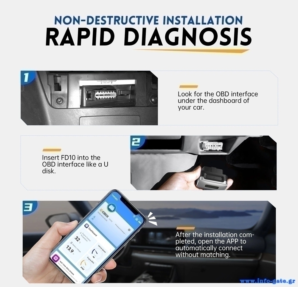 Υποστηρίζει πρωτόκολλα όπως ISO 9141, KWP2000, J1850 PWM, J1850 VPW, και CAN κ.λπ.