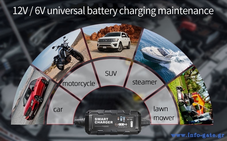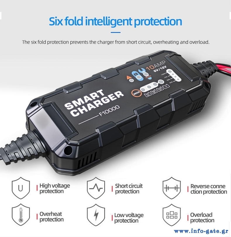 Ο BYGD F10000 είναι ένας αξιόπιστος και έξυπνος φορτιστής–συντηρητής μπαταρίας, ιδανικός για αυτοκίνητα, μοτοσυκλέτες και άλλα οχήματα με μπαταρίες 6V ή 12V.