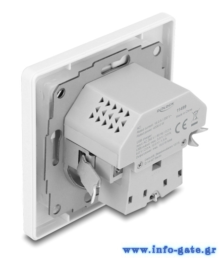 DELOCK πρίζα τοίχου 11499 με θύρες φόρτισης USB & USB-C, 18W PD, λευκή