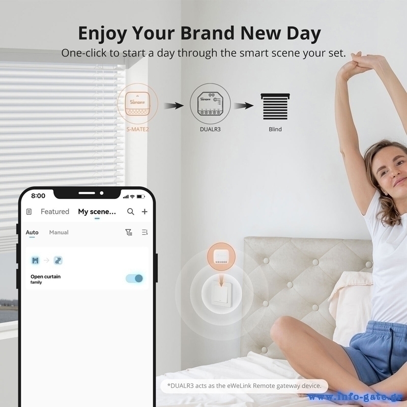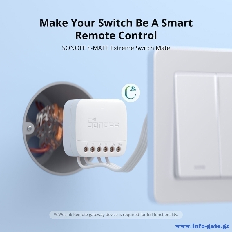 Ο διακόπτης S-MATE2 είναι μια συσκευή, που σε συνδυασμό με smart διακόπτες της Sonoff όπως ο MINIR4 και DUALR3 (πωλούνται ξεχωριστά), σας βοηθά να μετατρέψετε το σπίτι σας σε "έξυπνο σπίτι".