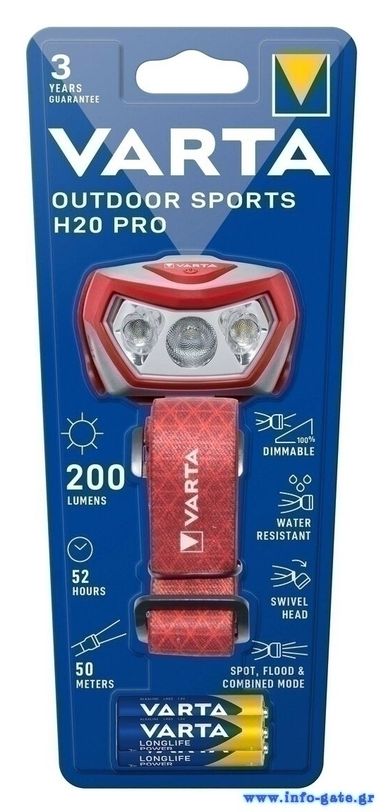 VARTA LED φακός κεφαλής Outdoor Sports H20 Pro, 200lm, IPX4, κόκκινος