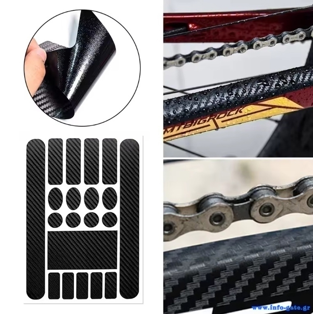 Σετ από προστατευτικά αυτοκόλλητα κατάλληλα για σκελετό ποδηλάτου. Παρέχουν εξαιρετική προστασία από γρατζουνιές και άλλα χτυπήματα. Το σετ περιλαμβάνει 20 αυτοκόλλητα σε διαφορετικά μεγέθη και σχήματα.