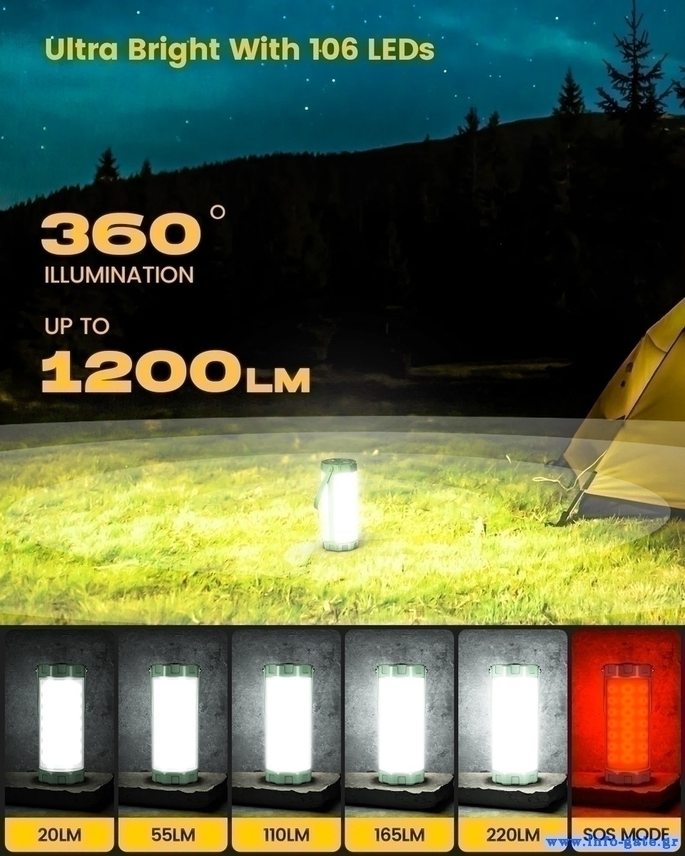 Υψηλής απόδοσης LED φανάρι της GLOCUSENT ιδανικό για κάμπινγκ, πεζοπορία, νυχτερινές δραστηριότητες και καταστάσεις έκτακτης ανάγκης.