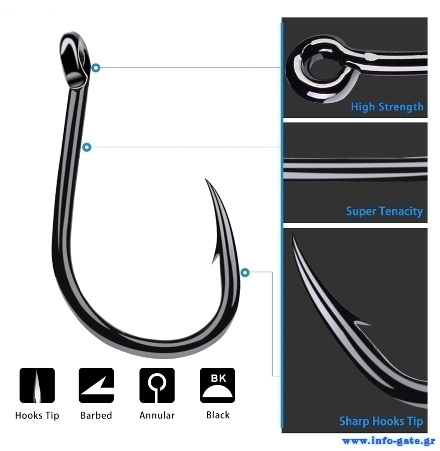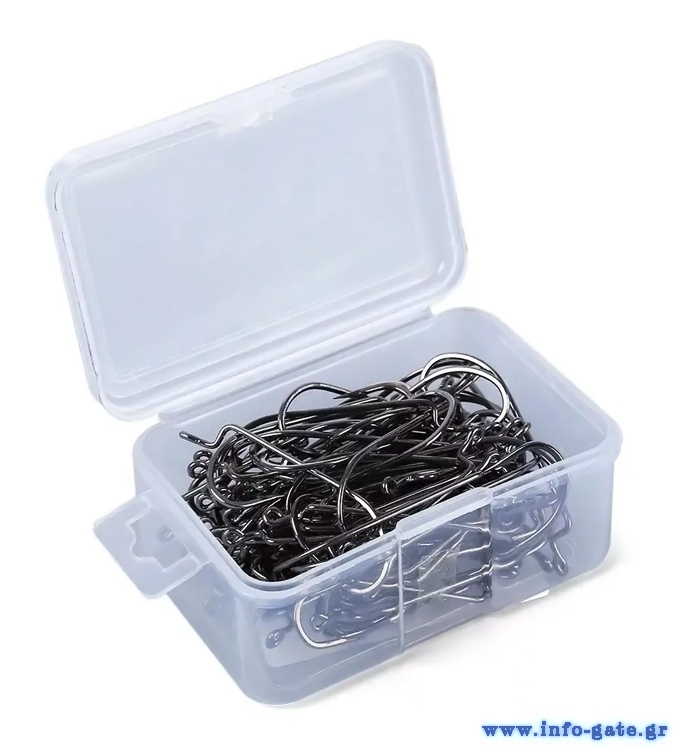 Σετ αγκίστρια ψαρέματος με θήκη για την αποθήκευση τους. Είναι κατασκευασμένα από ανθεκτικό και υψηλής ποιότητας carbon steel που δεν σκουριάζει.