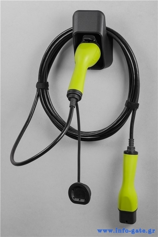 Βάση καλωδίου φόρτισης ηλεκτρικού οχήματος IEC 62196 τύπου 2, για την ασφαλή αποθήκευση του. Στερεώνεται με ασφάλεια στον τοίχο και προστατεύει το βύσμα φόρτισης παρατείνοντας της διάρκειας ζωής του.