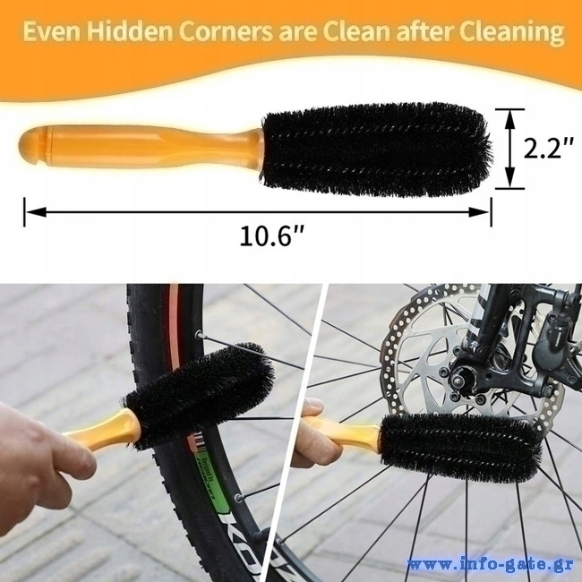 Ολοκληρωμένο σετ που αποτελείται από διάφορες βούρτσες και αξεσουάρ, ιδανικά για τον καθαρισμό ποδηλάτων. Είναι κατάλληλο για όλα τα είδη ποδηλάτων όπως mountain bike, road bike, city bike, hybrid bike, BMX bike και folding bike.