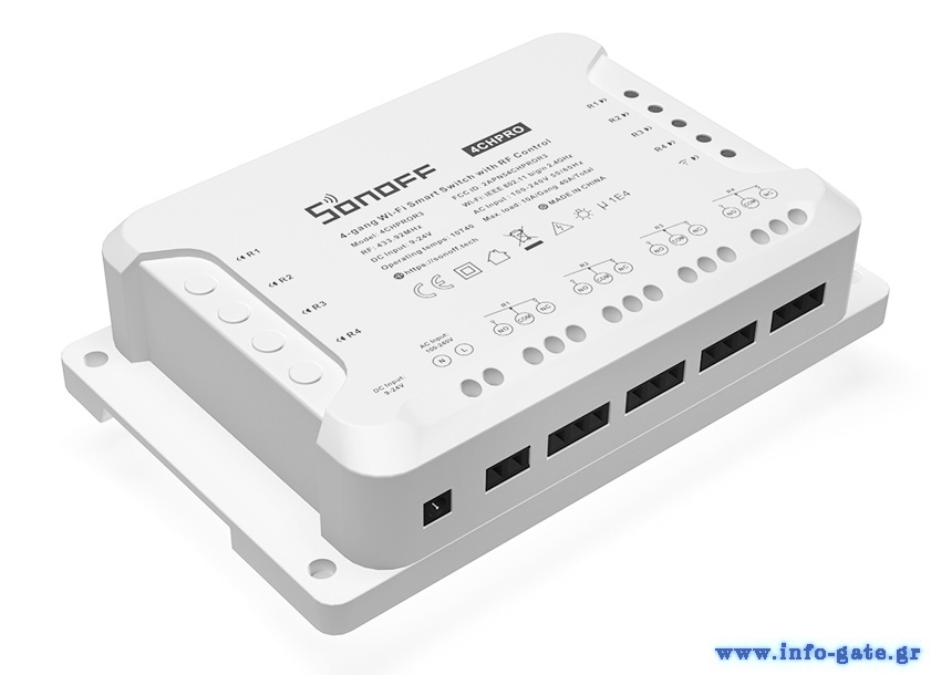 Το Sonoff 4CH R3 είναι ένας ασύρματος WiFi διακόπτης 4 καναλιών ο οποίος μπορεί να ελέγξει τέσσερεις οικιακές ηλεκτρικές συσκευές και υποστηρίζει την εναλλαγή μεταξύ 3 λειτουργικών τρόπων λειτουργίας: λειτουργία interlock/self-lock/inching. Αυτή η λειτουργία σας επιτρέπει να αφήσετε τον διακόπτη σας να ανάψει για λίγα δευτερόλεπτα, αλλά μετά σβήνει και λειτουργεί ως διακόπτης παλμών. Διαθέτει ενσωματωμένο δέκτη ραδιοσυχνοτήτων 433,92MHz RF, καθιστώντας δυνατό να ελέγχονται από το RF τηλεχειριστήριο. Οι χρήστες μπορούν να ενεργοποιήσουν/απενεργοποιήσουν από απόσταση τα συνδεδεμένα φώτα/συσκευές από την εφαρμογή eWeLink για iOS/Android ή με το 433MHz RF τηλεχειριστήριο. Μπορείτε να ενεργοποιήσετε χρονοδιακόπτες μονής/επανάληψης/αντίστροφης μέτρησης για αυτόματη ενεργοποίηση/απενεργοποίηση κατά την καθορισμένη ώρα. Οι χρονομετρητές μπορούν και λειτουργούν ακόμα και όταν το δίκτυο δεν είναι διαθέσιμο. Για να μπορούν οι συσκευές να ελέγχονται από άλλους, οι χρήστες μπορούν απλώς να μοιράσουν τις συσκευές σε άλλους λογαριασμούς και να ενεργοποιήσουν το συγκεκριμένο χρονοδιακόπτη.
