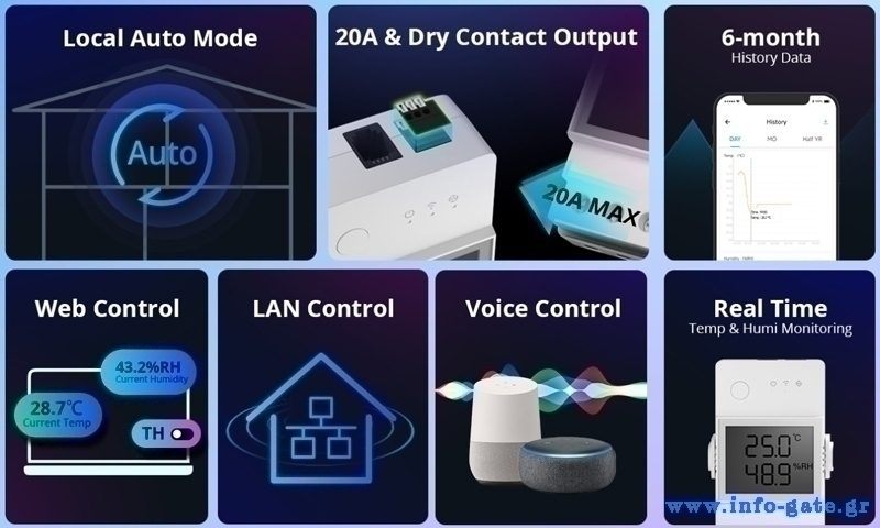 Συνδέεται μέσω Wi-Fi και της εφαρμογής eWeLink με το smartphone σας επιτρέποντας σας να παρακολουθείτε σε πραγματικό χρόνο την θερμοκρασία και την υγρασία αλλά και να ελέγχετε απομακρυσμένα τις συνδεδεμένες συσκευές σας.