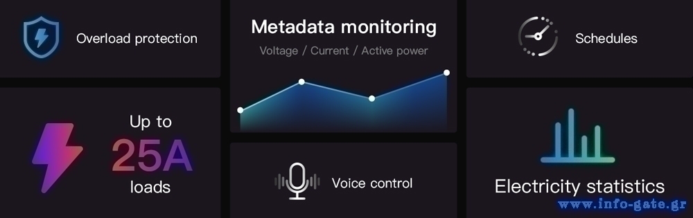 Λειτουργεί σαν συσκευή παρακολούθησης ισχύος, η οποία σας επιτρέπει να παρακολουθείτε την ακριβή τάση και ισχύ σε πραγματικό χρόνο μέσω της εφαρμογή eWeLink για smartphone. Ο διακόπτης POWR3 μπορεί να προστατεύσει τις συσκευές σας από υπερφόρτωση. Αυτό που πρέπει να κάνετε είναι να ορίσετε τιμές κατώτατου ορίου για το ρεύμα, την τάση και την ισχύ.