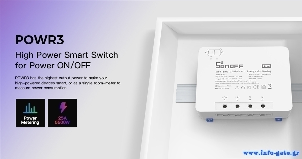 Το Sonoff POWR3 είναι ένας διακόπτης WiFi που σας επιτρέπει να διαχειρίζεστε και να ελέγχετε εξ αποστάσεως τις συσκευές σας και να παρακολουθείτε τη χρήση της οικιακής σας ενέργειας.