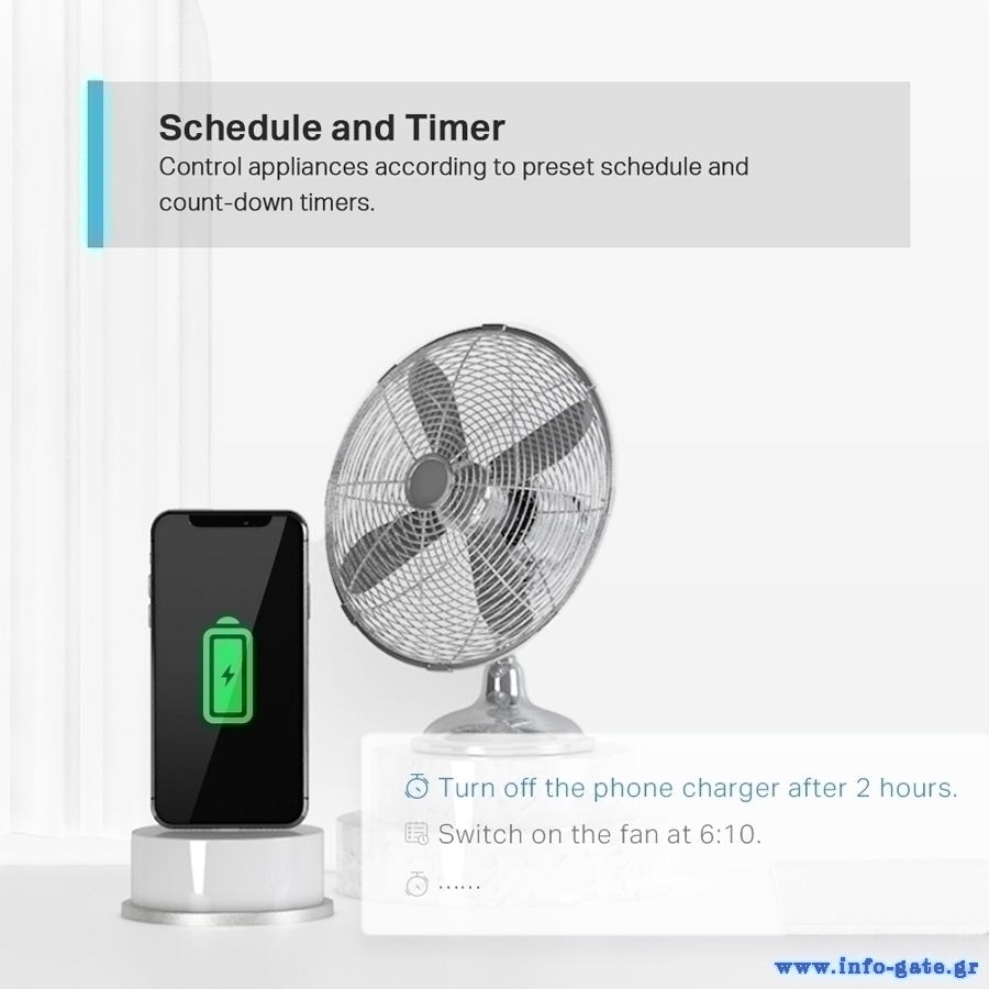 Με τον TAPO-P100 μπορείτε, επιπρόσθετα, να καθορίσετε μελλοντικές, προγραμματιζόμενες λειτουργίες των συσκευών σας, να ορίσετε τον χρόνο για τον οποίο θα είναι σε λειτουργία, ακόμη και να θέσετε τις συνδεδεμένες συσκευές σε Away mode, ώστε να ανοιγοκλείνουν αυτόματα, δίνοντας την αίσθηση ότι κάποιος βρίσκεται εντός σπιτιού.