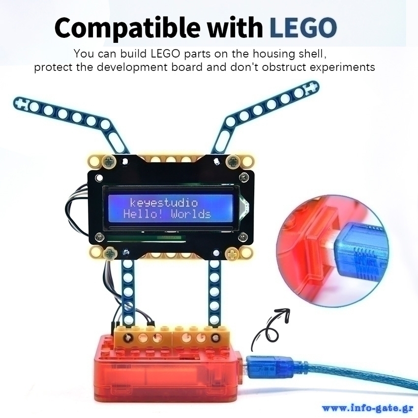 Πλαστική θήκη προστασίας της Keyestudio για Arduino UNO R3 development board, συμβατή με LEGO parts.