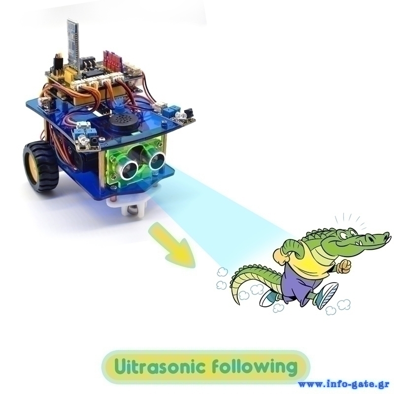 -Λειτουργίες line tracking, gravity sensing, cross maze, ultrasonic following και αποφυγή εμποδίων