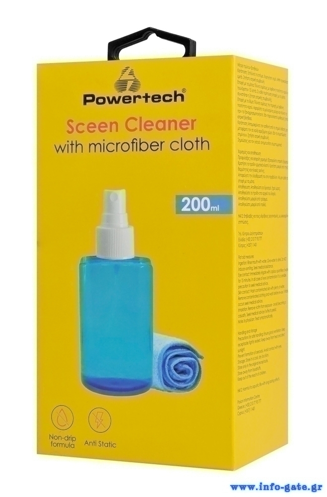 POWERTECH σπρέι καθαρισμού οθόνης PT-1312 με πανί μικροϊνών, 200ml