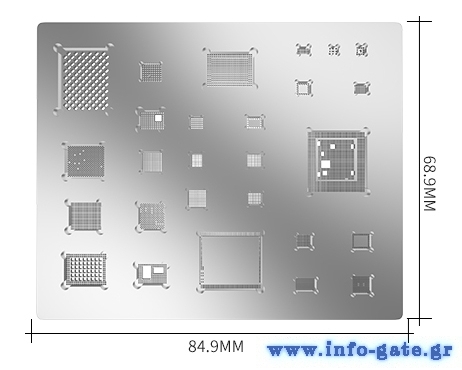 Stencil υψηλής ποιότητας για reballing συσκευών iPhone. Περιλαμβάνει όλα τα εξαρτήματα BGA του κινητού και το πάχος του είναι μόλις 0.33mm.