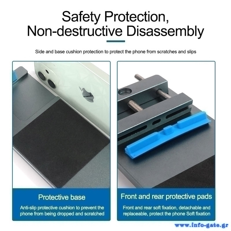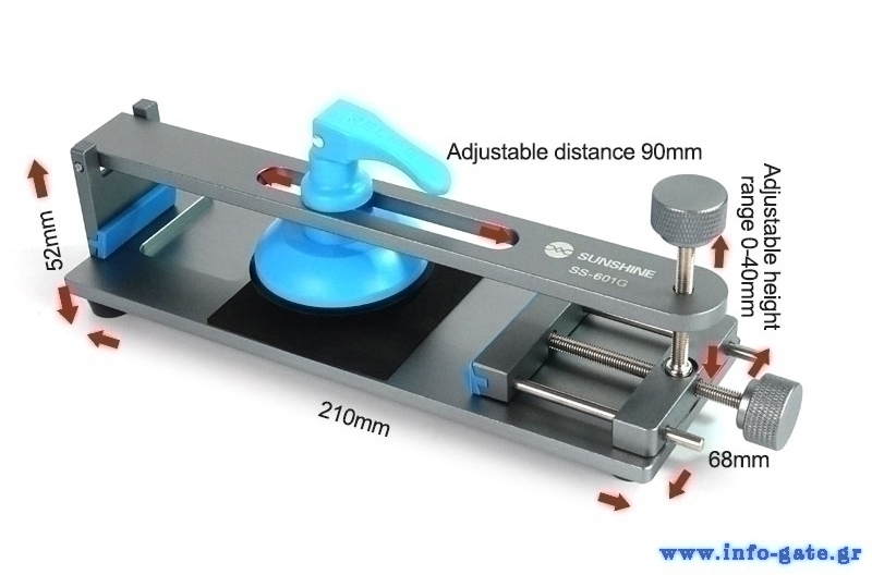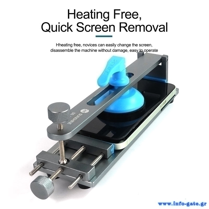 Εργαλείο διαχωρισμού LCD οθόνης smartphone από την Sunshine. Ο διαχωρισμός της οθόνης γίνεται εύκολα με ισχυρή βεντούζα, χωρίς την χρήση θερμότητας. Η βάση τοποθέτησης του smartphone εξοπλίζεται με αντιολισθητικό pad που δεν προκαλεί φθορές, ενώ διαθέτει και ειδική σχεδιάσει για την προστασία της κάμερας. Το μήκος τοποθέτησης είναι ρυθμιζόμενο επιτρέποντας την τοποθέτηση smartphone διαφόρων μεγεθών.