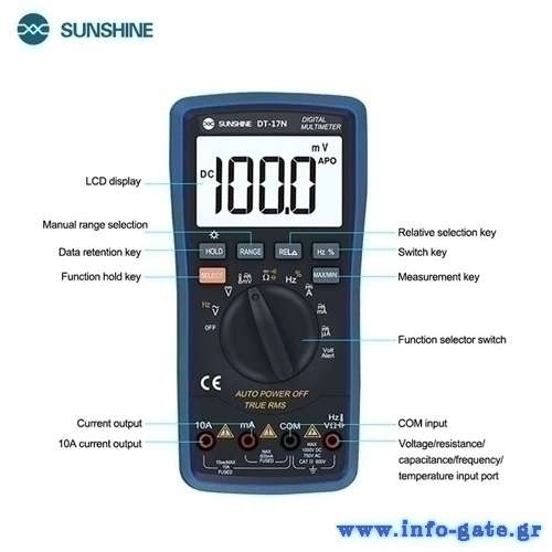 SUNSHINE ψηφιακό πολύμετρο DT-17N, AC 700V/DC 1000V, AC/DC 10A