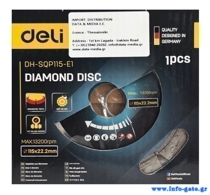 DELI δίσκος κοπής διαμαντέ DH-SQP115-E1, δομικών υλικών, 115mm, 13200rpm