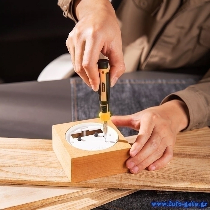 Σετ κατσαβιδιών ακριβείας της Deli το οποίο αποτελείται από 2 κατσαβίδια, 2 επεκτάσεις και 61 διαφορετικές κεφαλές και εξαρτήματα κατσαβιδιού.