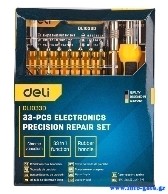 DELI σετ κατσαβίδια ακριβείας DL1033D, αντιολισθητική λαβή, Cr-V, 33τμχ