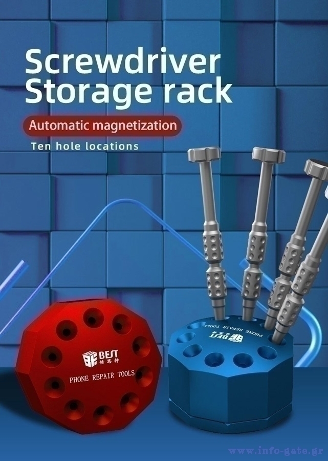 Στιβαρή βάση κατσαβιδιών της Best, 10 θέσεων, με μαγνήτη για τον μαγνητισμό των κατσαβιδιών.