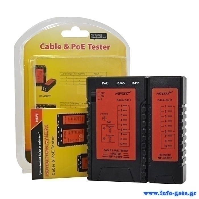 NOYAFA tester καλωδίων δικτύου NF-468PF για PoE RJ45 & RJ11