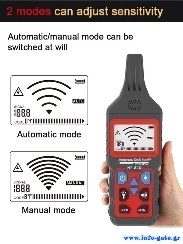 Το NF-826 είναι ένα εξαιρετικό εργαλείο για τον εντοπισμό καλωδίων, συρμάτων και σωλήνων υπογείως αλλά και μέσα από τοίχους.