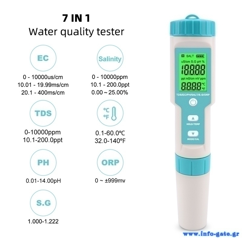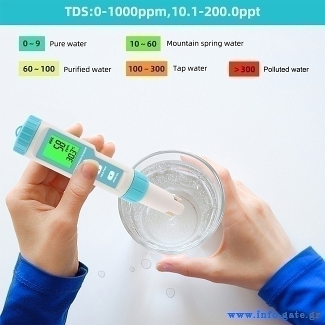 -μέτρηση TDS, EC, PH, αλατιού, S.G, ORP & θερμοκρασίας