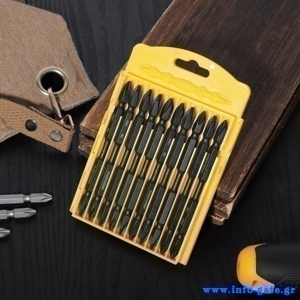 Σετ της Deli που αποτελείται από 10 μύτες κατσαβιδιού για χρήση με δράπανο ή ηλεκτρικό κατσαβίδι. Είναι τοποθετημένα μέσα σε πλαστική θήκη, για την εύκολη τακτοποίηση και μεταφορά τους.