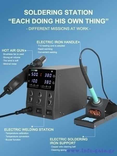 Με τη δυνατότητα χρήσης και του κολλητηριού αλλά και του πιστολιού θερμού αέρα, παρέχει ευελιξία και εξαιρετική απόδοση σε κάθε εργασία.
