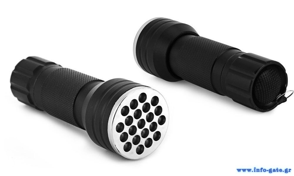 Φακός UV από την Sunshine, κατάλληλος για το στέγνωμα κόλλας UV. Είναι μικρός σε μέγεθος, με μεταλλικό σώμα, και η τροφοδοσία του γίνεται με 3x AAA μπαταρίες (δεν συμπεριλαμβάνονται).