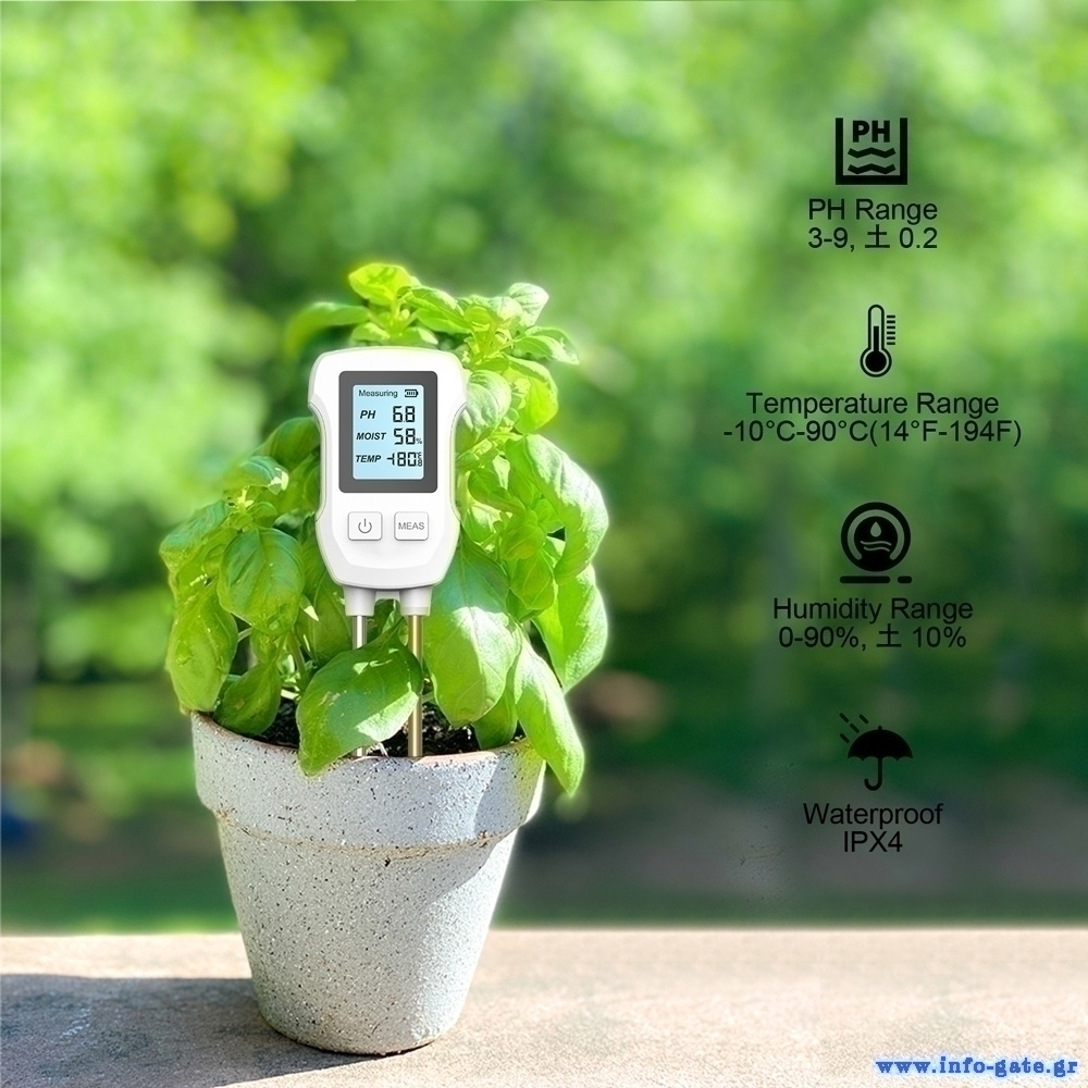 Σας επιτρέπει να ελέγχετε το PH, την υγρασία και τη θερμοκρασία του εδάφους ώστε να το διατηρείτε στα σωστά επίπεδα.