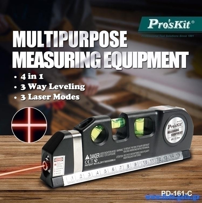PROSKIT γραμμικό αλφάδι laser PD-161-C με κόκκινη δέσμη, μετροταινία