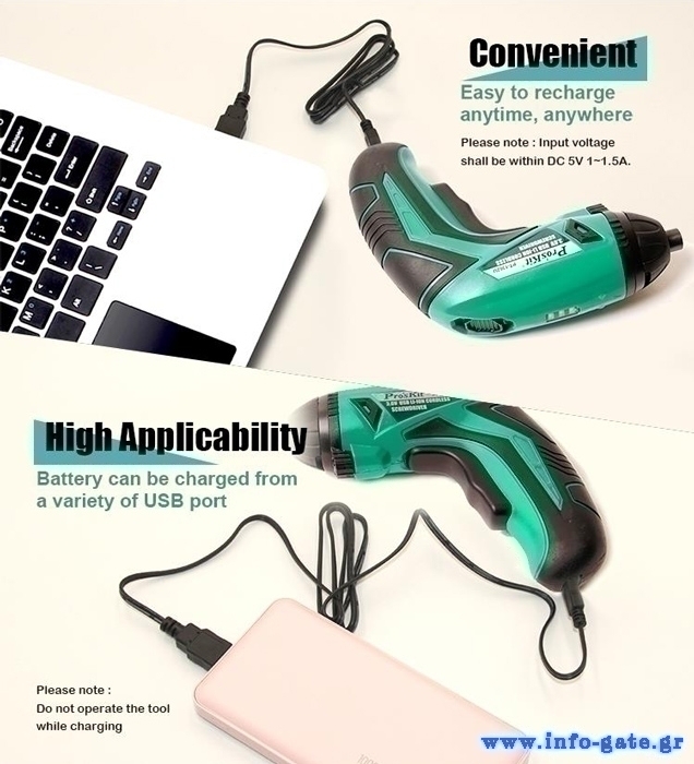 Στη συσκευασία συμπεριλαμβάνονται 4 μύτες κατσαβιδιού και καλώδιο φόρτισης.