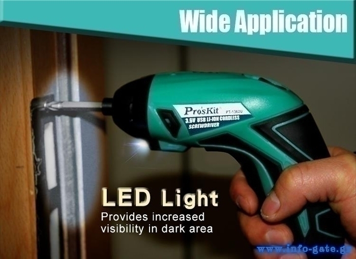 Ηλεκτρικό κατσαβίδι από την PROSKIT με ισχυρό κινητήρα και βολικό LED φακό για άνετη εργασία ακόμη και στο σκοτάδι.