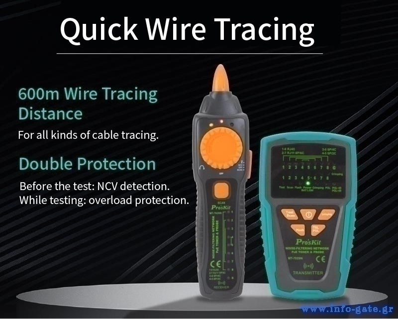 PROSKIT tester καλωδίων δικτύου MT-7029N για RJ45/11/12