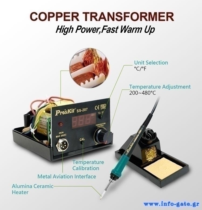 PROSKIT σταθμός συγκόλλησης SS-207B με κολλητήρι, 60W, 200~480 °C