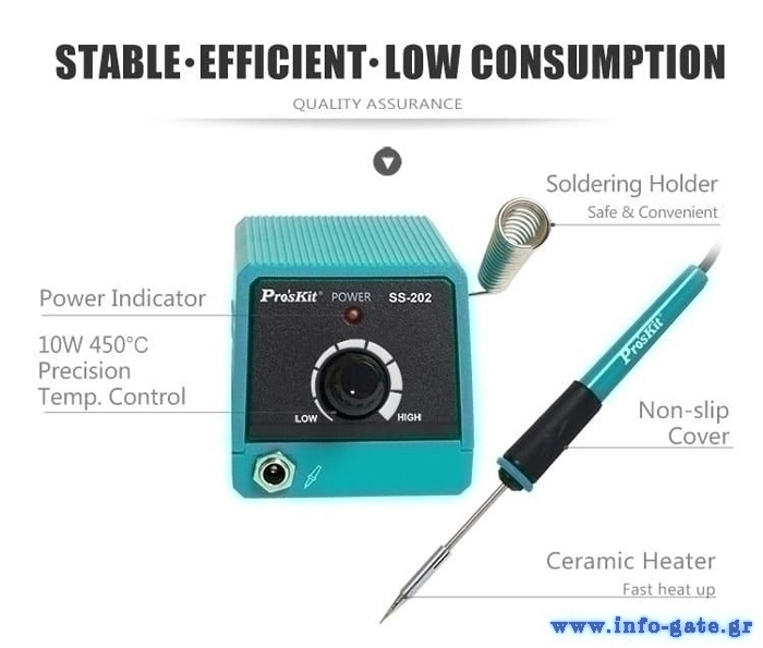 PROSKIT μίνι σταθμός συγκόλλησης SS-202F με κολλητήρι, 10W, 100~450 °C