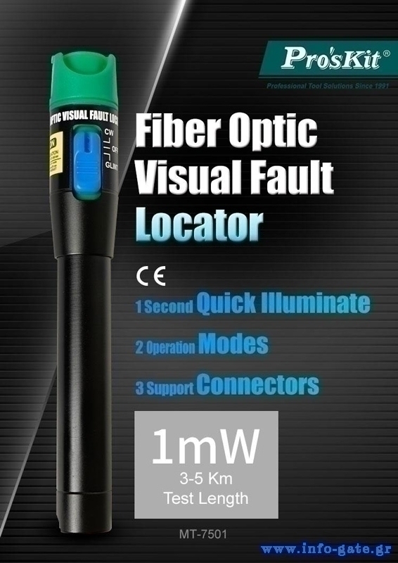 Το MT-7501 από την PROSKIT είναι ένα εργαλείο για την ανίχνευση της θέσης οπτικού σφάλματος σε οπτικές ίνες.