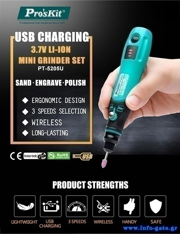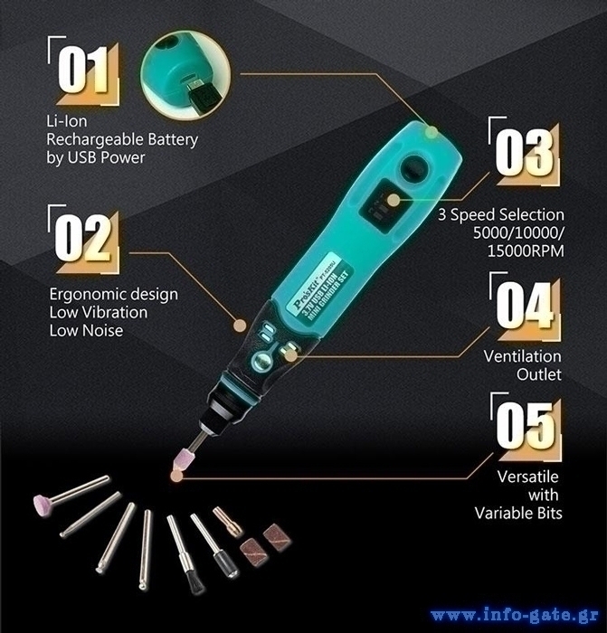 PROSKIT περιστροφικό πολυεργαλείο PT-5205U, 3.7V, 600mah, έως 15000rpm