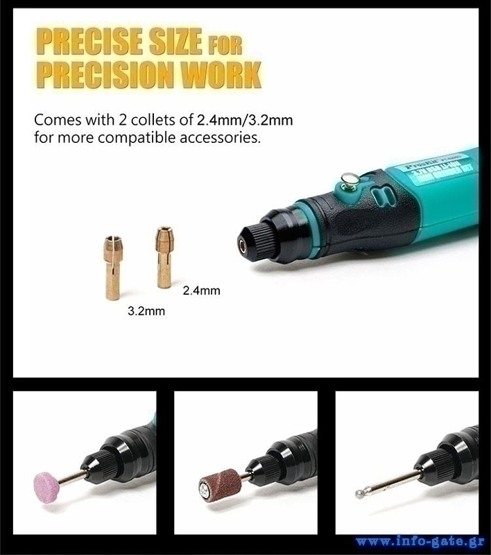 Μίνι περιστροφικό πολυεργαλείο της PROSKIT, κατάλληλο για λείανση, τρίψιμο, χάραγμα & καθαρισμό διαφόρων επιφανειών.