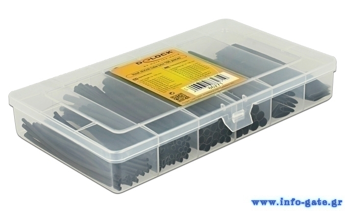 Το σετ περιλαμβάνει 100 θερμοσυστελλόμενα μαύρου χρώματος σε 6 διαφορετικές διαμέτρους. Είναι τοποθετημένα μέσα σε πλαστικό κουτί για την ταξινόμηση και προστασία των μονωτικών το οποίο μπορεί να επαναχρησιμοποιηθεί για την αποθήκευση διαφόρων αξεσουάρ.