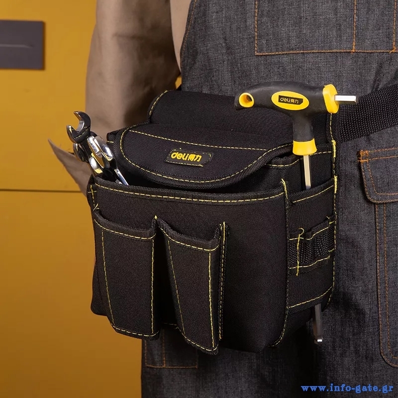 Εργαλειοθήκη μέσης πολλαπλών θέσεων της Deli, ιδανική για την αποθήκευση διαφόρων εργαλείων χειρός.